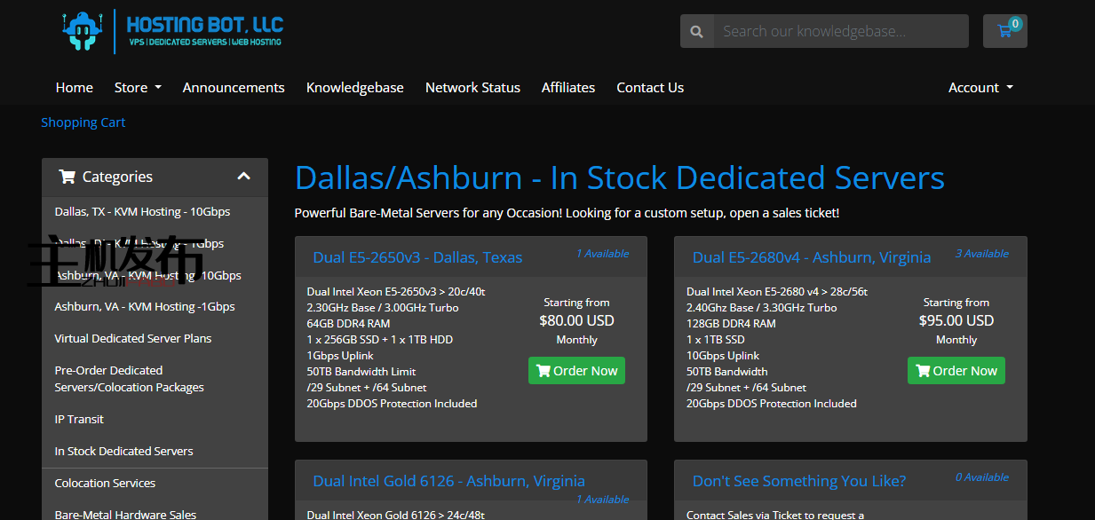 *[20% 折扣] Hosting Bot, LLC | 德克萨斯州达拉斯 / 弗吉尼亚州阿什本 | 裸机服务器 | 1-10Gbps