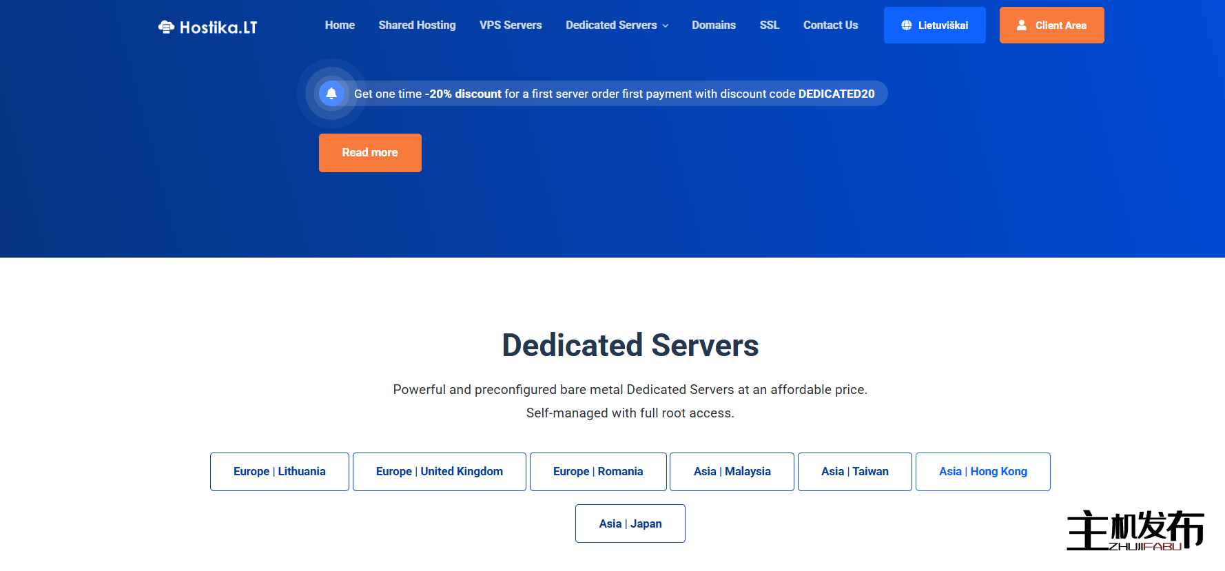 Hostika.LT 裸机(自行管理)专用服务器,每月 23.20 欧元起,位于欧洲:立陶宛、罗马尼亚、英国 (UK) 和亚洲:马来西亚、台湾、香港、日本。