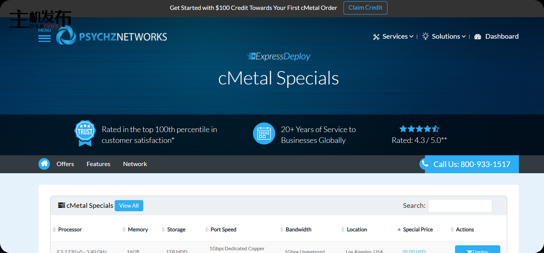 在上面未提到的城市寻找 10Gbps 不限流量的裸机服务器?联系 sales@psychz.net,我们很乐意看看我们是否可以根据库存进行价格匹配!
