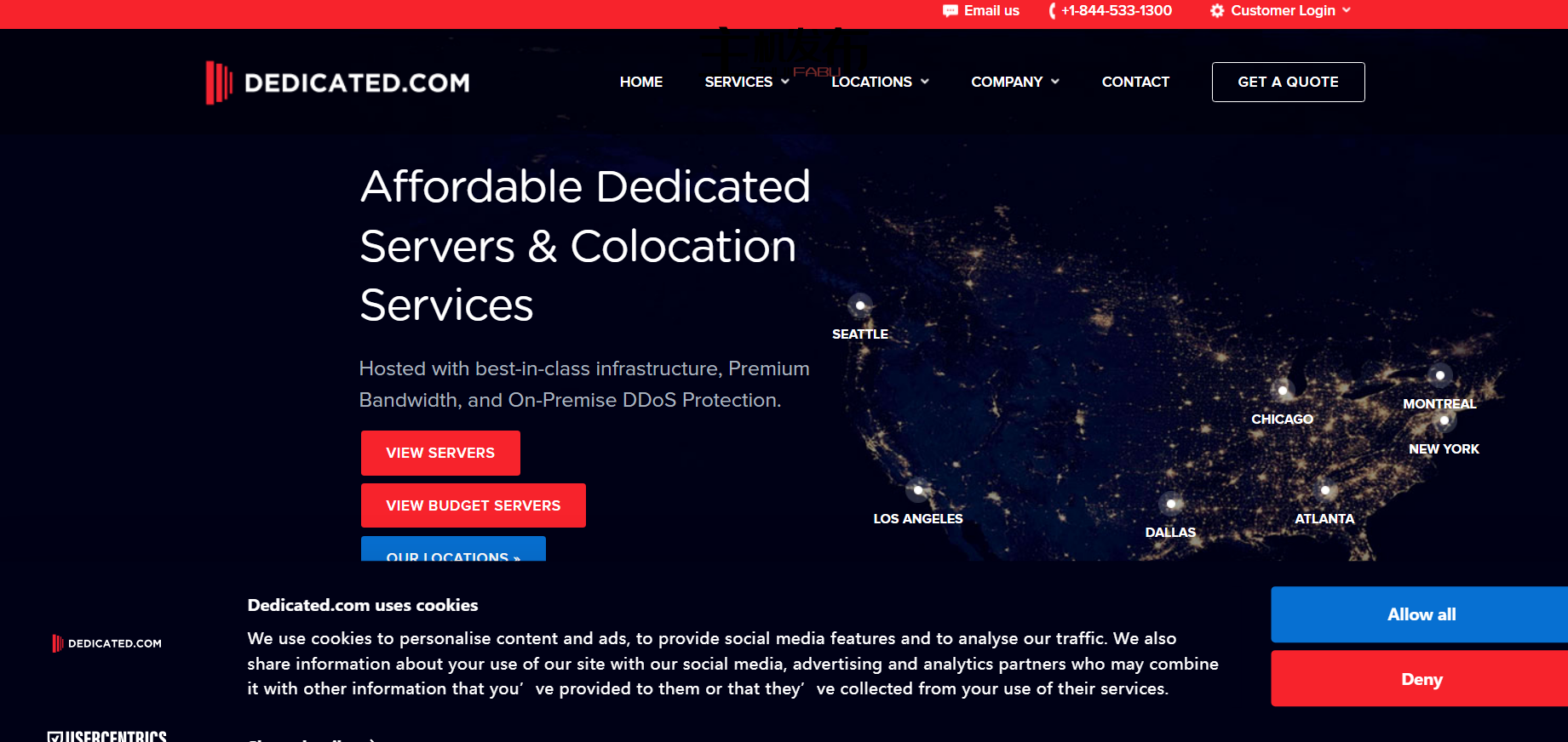 我们的专用服务器在美国和加拿大的六个不同地点可用:佐治亚州亚特兰大;伊利诺伊州芝加哥;德克萨斯州达拉斯;加利福尼亚州洛杉矶;加利福尼亚州魁北克省蒙特利尔;和纽约州纽约市。无论您的企业位于何处,我们都有适合您的服务器选项。